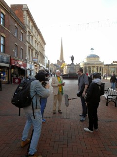 Colin was being shadowed by an independent film production company looking to follow him throughout the campaign. Along with the flag, they proved to be a valuable visual prompt to passing members of the public to stop and talk.