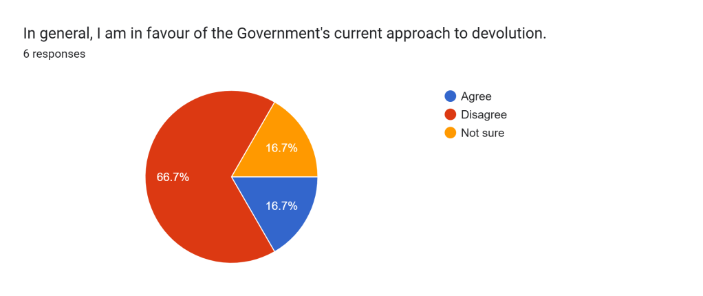 There is a tendency for independent candidates to be somewhat localist, which is reflected in our polling on matters of devolution. Interestingly, while all but one respondent was in favour of more devolution for their local area, two thirds of respondents were in disagreement with the Labour Government’s current approach to devolution.