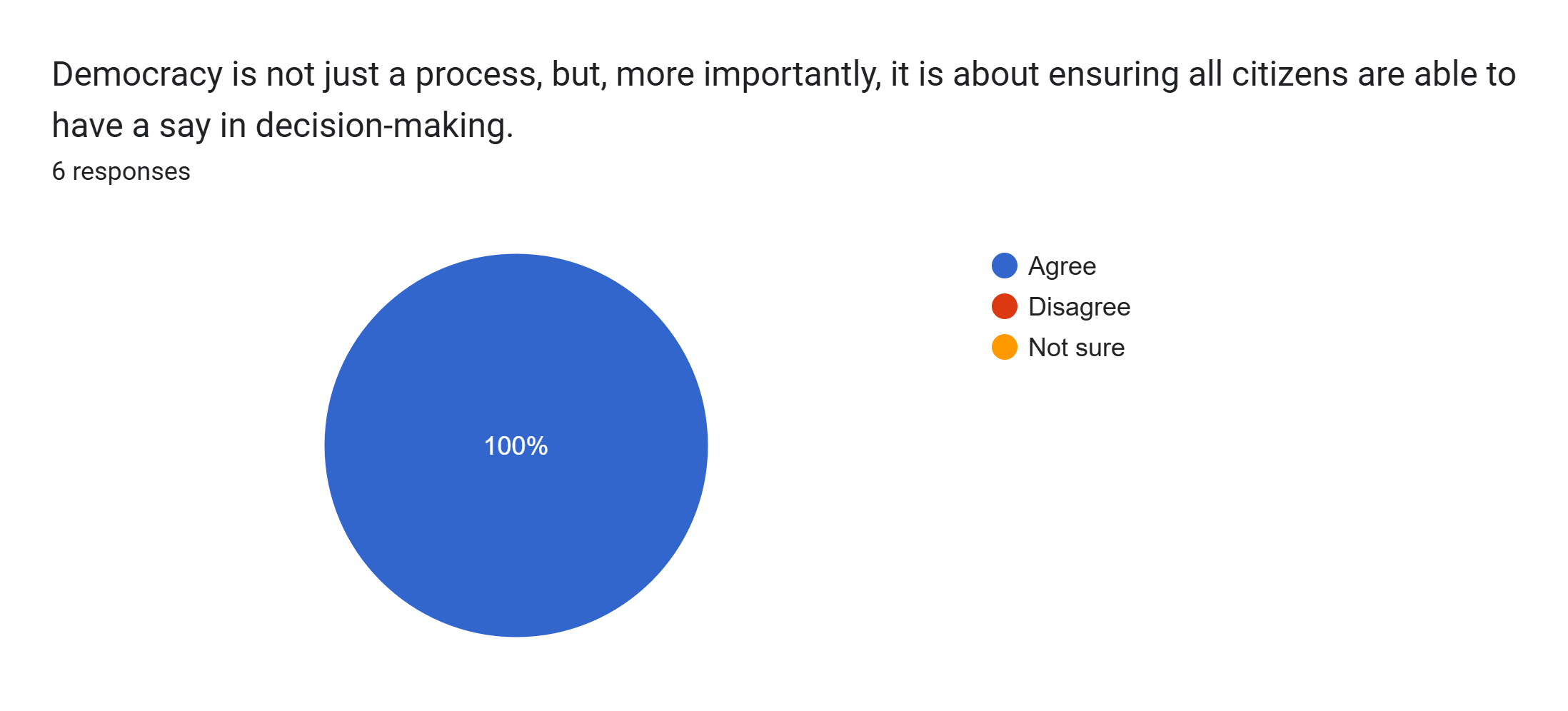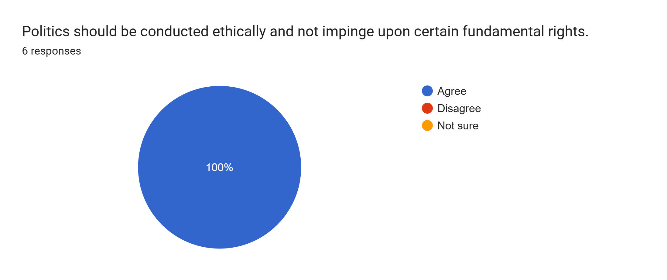 Statements aligning with environmental stewardship, ethical politics, and vital democracy were all responded to with complete agreement. Only the community ownership value proved capable of producing doubt in one respondent.